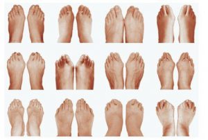 Some people have compensated forefeet, their metatarsals don’t meet the ground in an even transverse arch. The metatarsals and toes bow or tilt toward or away from the mid line. The big toe may be higher than the little toe or the opposite, the little toe higher than the big toe when the talus is in neutral. This is due to years of walking around with the talus not in neutral. If the client has this compensation, teaching them foot corrective exercises can improve the function of the foot and in turn change their pelvic position.