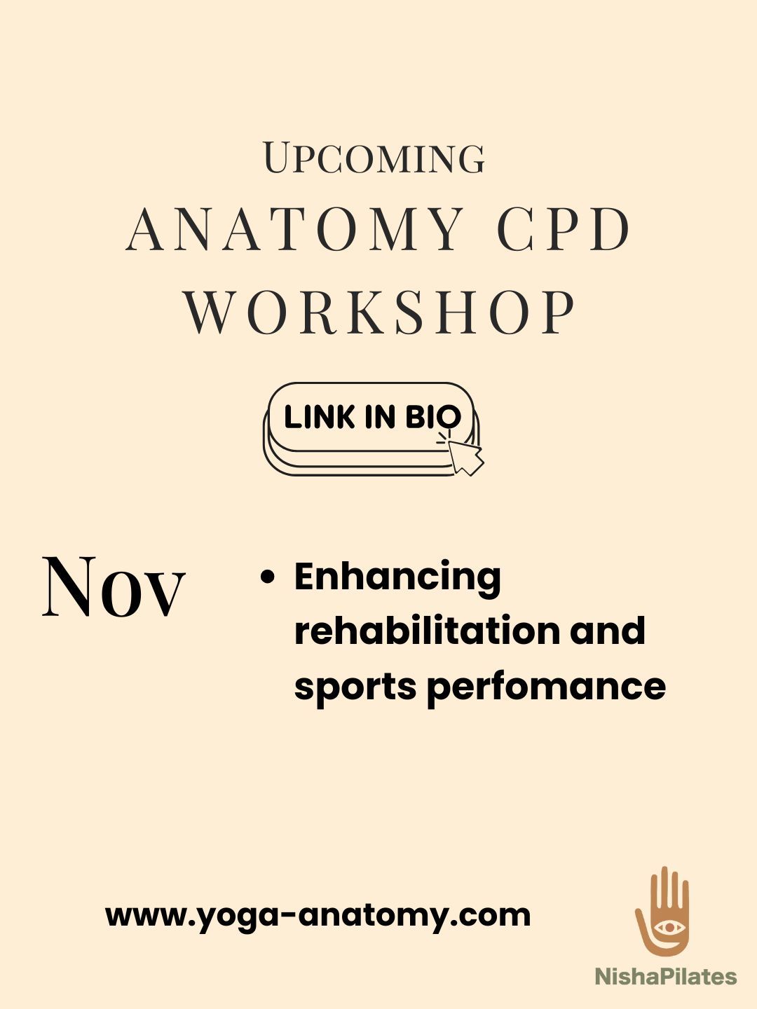 Pilates Mastermind day Next month…MARCH! At my HQ here in Pilates Manchester (Sale, Manchester), I’m running a private small 6 hour Pilates mastermind day workshop. I’ll be covering in depth lower limb anatomy and a marketing masterplan to: Get WAY MORE enquiries and leads from high paying customers Why your clients and you are cheating the lower limb connection on the reformer Preparatory movements prior to traditional asana/rehab practice, including joint mobilising and muscle warming techniques. Create effortless alignment with the legs, pelvis and spine with your structure & structures. Improve stability and strength through the – ‘legs of the belly’. Increase hip flexibility using Myofascial & sling systems. Progress with integrity into and out of a wide range of movements including yoga/Pilates asana, ranging from simple to complex. State the difference between prohibitions and precautions, relating this to a knowledge of anatomy and physiology as well as to a teaching situation. Modify movements, understand the reasons for modifications and be able to teach these. This could include resources to make the teaching more effective. Recognise efficient breathing habits and teach the progression from basic breathing to pranayama using a range of yoga techniques including kriyas, mudras and bandhas. Design and utilise a scheme of movements to progress clients over a period of weeks. Assess students’ progress and achievements. Evaluate their own needs and teaching skills. Recognise the problems associated with different posture types and ROM in the client. Create a safe working environment for the teaching of a class, which must involve an interchange of information between teacher and student. As of RIGHT NOW? I have SIX seats spare. These events are FREE for our Apprenticeship teachers! And if you join us next month, YOU CAN HAVE ONE OF THOSE SEATS FOR JUST £145 (before 1st March), £165 (after 1st March) If growing your Pilates business and finally mastering your ideal client, this is a MUST DO for you (and it should be). Go ahead and book a free Clarity Call: But don’t mess around. This spaces won’t last long. When: Sunday 23rd March 2025 Times: 10.30am - 5.30pm (6 hours CPD) Shared lunch: 1.30pm-2.30pm What is a shared lunch? A shared lunch is a sikh tradition meaning, when we eat, we all sit together on the floor. We all contribute by bringing something healthy to eat which is vegetarian and made with love. This also avoids costly catering plus unhealthy choices such as white grains, pastries and sugar which cause inflammation. Who is this for: Pilates teachers including mat, reformer, Yoga teachers, physios, osteopaths, chiropractors, manual therapists, dancers and creators ========= Nisha ‘Let’s Go’ Pilates Book and pay here: This event is non refundable and non transferable! PS – Like I’ve said many times before, my Pilates apprenticeship program is for SERIOUS Pilates studio business owners only. You can get a taste by coming to this amazing mastermind day. And if you’re serious about growing your clients, MASTERING your Pilates business, then this is critical for you! I’m ready when you are. PPS – Can’t make this one? Don’t worry, I run many events throughout the year, all included in the apprenticeship program